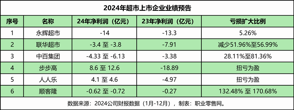 在零售行業(yè)競爭加劇、消費(fèi)市場快速變化的當(dāng)下,各大商超企業(yè)正經(jīng)歷著前所未有的挑戰(zhàn)與變革。 近期,永輝、步步高、聯(lián)華、中百、人人樂等6家上市商超企業(yè)發(fā)布了2024年業(yè)績預(yù)告。其中,永輝、中百、順客隆凈利潤虧損擴(kuò)大,而聯(lián)華超市虧損有所收窄;人人樂和步步高則實(shí)現(xiàn)扭虧為盈,但盈利主要依賴于資產(chǎn)出售和重整收益。 盡管整體業(yè)績表現(xiàn)參差不齊,但大部分商超企業(yè)正在積極推進(jìn)自主調(diào)改。以永輝和步步高為代表,這兩家企業(yè)通過學(xué)習(xí)胖東來的調(diào)改經(jīng)驗(yàn),在2024年取得了顯著成效,并計(jì)劃在2025年繼續(xù)深化調(diào)改工作。 永輝超市:去年預(yù)虧14億元,調(diào)改與關(guān)店并行 近日,永輝超市發(fā)布業(yè)績預(yù)虧公告顯示,2024年歸母凈利潤預(yù)計(jì)為-14.0億元,歸屬于上市公司股東扣除非經(jīng)常性損益后的凈利潤為-22.1億元。而在2023年,永輝超市歸屬于上市公司股東的凈利潤為-13.3億元,歸屬于上市公司股東扣除非經(jīng)常性損益后的凈利潤為-19.8億元。顯然,2024年永輝超市虧損進(jìn)一步擴(kuò)大。 對于2024年業(yè)績預(yù)虧的原因,永輝超市在公告中坦言,公司2024年的經(jīng)營情況相比2023年并未明顯改善,一方面是零售行業(yè)的整體挑戰(zhàn)導(dǎo)致公司客流和客單持續(xù)承壓,但更重要的是由于公司從2024年下半年開始主動進(jìn)行的戰(zhàn)略和經(jīng)營模式轉(zhuǎn)型帶來的前期陣痛。 截至2024年底,永輝超市共完成了31家門店的調(diào)改。盡管調(diào)改后的門店迅速且大幅提升了客流量和銷售額,但全新的經(jīng)營模式在前期需要大量的人力物力投入,以及足夠長時(shí)間的能力迭代。同時(shí),公司在調(diào)改過程中關(guān)閉了一些尾部門店。這些因素共同導(dǎo)致了全年業(yè)績的下滑。 永輝超市的整體毛利率預(yù)計(jì)也將出現(xiàn)下滑。公司解釋稱,這主要是因?yàn)樵陂T店調(diào)改過程中,主動優(yōu)化商品結(jié)構(gòu)和采購模式,在淘汰舊品、引入新品的過程中推動裸價(jià)和控后臺策略。永輝超市表示,雖然這一過程中公司整體毛利率短期內(nèi)受到一定影響,但從長遠(yuǎn)來看,這將有利于提高商品采購的透明度,擴(kuò)大商品的議價(jià)空間,實(shí)現(xiàn)與供應(yīng)商的互利共贏。 進(jìn)入調(diào)改期的永輝超市正在快速關(guān)閉尾部門店。據(jù)永輝超市官網(wǎng)顯示,截至2025年2月21日,永輝超市門店數(shù)量為776家,較2023年底的1000家減少了超224家。 自2024年5月起,永輝超市正式啟動 “學(xué)習(xí)胖東來” 調(diào)改項(xiàng)目,旨在全面提升賣場環(huán)境、商品品質(zhì)、服務(wù)質(zhì)量和員工福利。 繼今年2月公布首批20家調(diào)改門店后,永輝超市于近期發(fā)布了全國第二批調(diào)改門店名單,共涉及24家門店,分布在北京、廣西、福州等19個城市。第二批調(diào)改門店將于5月底前完成調(diào)改,屆時(shí)永輝超市學(xué)習(xí)胖東來自主調(diào)改門店將達(dá)到83家(含胖東來幫扶調(diào)改門店)。按照計(jì)劃,預(yù)計(jì)到2025年中,調(diào)改門店數(shù)量將突破100家,目前調(diào)改工作正在有序推進(jìn)。 值得一提的是,截至當(dāng)前,全國已有41家完成調(diào)改的門店正式開業(yè)。此外,今年2月,永輝超市面向門店一線員工實(shí)施了分紅計(jì)劃,總額達(dá)1139萬元,惠及超過8000名員工。這一舉措極大地提升了員工的積極性和歸屬感,為門店的高效運(yùn)營和服務(wù)升級提供了有力支持。 聯(lián)華超市:預(yù)計(jì)虧損3.4億元至3.8億元 3月7日,聯(lián)華超市發(fā)布盈利警告,預(yù)計(jì)截至2024年12月31日止年度歸屬于公司股東的凈虧損將顯著減少至約人民幣3.4億元至3.8億元。相較于2023年同期經(jīng)審計(jì)歸屬于公司股東凈虧損人民幣7.91億元,這一數(shù)字顯示出明顯的改善。 公告顯示,公司2024年虧損減少的主要原因包括:一是2024年聯(lián)華超市不再確認(rèn)一家聯(lián)營公司的應(yīng)占虧損,該聯(lián)營公司權(quán)益已減計(jì)至零元;二是聯(lián)華超市基于整體戰(zhàn)略規(guī)劃調(diào)整,逐步關(guān)閉部分長期虧損門店,縮減虧損業(yè)務(wù)規(guī)模,降低營業(yè)支出,優(yōu)化資源配置,從而減少虧損。 聯(lián)華超市成立于1997年,2003年在香港主板掛牌上市。業(yè)務(wù)涵蓋大賣場、標(biāo)超、便利店三大零售業(yè)態(tài),曾是中國連鎖超市的領(lǐng)軍企業(yè)。自2013年達(dá)到業(yè)績高點(diǎn)后,公司業(yè)績開始下滑。2014年至2023年,公司持續(xù)虧損,2023年凈虧損近8億元,毛利水平屢創(chuàng)新低。2024年上半年毛利率僅為11.49%,較2023年同期進(jìn)一步下滑。算上2024年,聯(lián)華超市已連續(xù)10年虧損,累計(jì)虧損超過39億元。 不過,去年9月,聯(lián)華超市加入“調(diào)改潮”,正式進(jìn)入戰(zhàn)略轉(zhuǎn)型期。作為第四代轉(zhuǎn)型樣板店,中環(huán)店經(jīng)過90天調(diào)改后于2024年9月26日開業(yè),業(yè)績顯著提升。線下零售總額同比提升35%,客流量提升20%,客單價(jià)上漲14%,90%顧客選擇二次回購。 同年11月底,上海其余23家世紀(jì)聯(lián)華超市完成第一階段調(diào)改,實(shí)現(xiàn)商