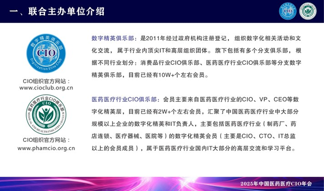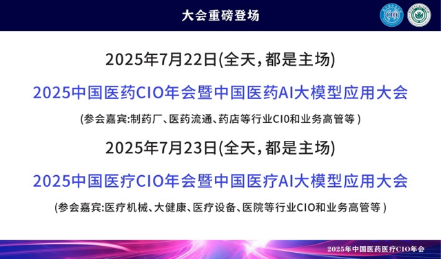 CGCA 2025來了,作為國內(nèi)唯一 一家專注醫(yī)藥醫(yī)療行業(yè)聚焦CIO的主辦方,一直為品牌方CIO和行業(yè)信息化提供商打造高質(zhì)量、高效溝通的峰會(huì)。 CGCA目前已成功舉辦多屆,歷屆會(huì)議吸引了無數(shù)知名企業(yè)的CIO參與,是中國醫(yī)藥醫(yī)療行業(yè)級(jí)別高、規(guī)模大、極具影響力的CIO盛會(huì)。 主辦方介紹:數(shù)字精英俱樂部,是2011年經(jīng)過政府機(jī)構(gòu)注冊(cè)登記,組織數(shù)字化相關(guān)活動(dòng)和文化交流,屬于行業(yè)內(nèi)頂尖IT和高層組織團(tuán)體。旗下包括有多個(gè)分支俱樂部,根據(jù)不同行業(yè)劃分:消費(fèi)品行業(yè)CIO俱樂部、醫(yī)藥醫(yī)療行業(yè)CIO俱樂部、新能源行業(yè)CIO俱樂部、裝備制造行業(yè)CIO俱樂部等分支數(shù)字精英俱樂部,目前已經(jīng)有60W+個(gè)左右會(huì)員。 醫(yī)藥醫(yī)療行業(yè)CIO俱樂部:會(huì)員主要來自醫(yī)藥醫(yī)療行業(yè)的CIO、VP、CEO等數(shù)字化精英層,目前已經(jīng)有2W+個(gè)左右會(huì)員,匯聚了中國醫(yī)藥醫(yī)療行業(yè)中大部分規(guī)模以上企業(yè)的數(shù)字化精英和IT負(fù)責(zé)人,主要包括醫(yī)藥醫(yī)療行業(yè)(制藥廠、藥店連鎖、醫(yī)療器械、醫(yī)院等)的數(shù)字化精英會(huì)員(主要是CIO、CTO、IT總監(jiān)以上的會(huì)員成員),屬于醫(yī)藥醫(yī)療行業(yè)國內(nèi)IT大部分的高層交流和學(xué)習(xí)平臺(tái)。 會(huì)議介紹: 2025中國醫(yī)藥CIO年會(huì)暨中國醫(yī)藥AI大模型應(yīng)用大會(huì),相約2025年7月22日在廣州召開,以“智能 創(chuàng)新 轉(zhuǎn)型”為主題,將邀請(qǐng)600+CIO嘉賓、優(yōu)質(zhì)信息科技展商、行業(yè)知名媒體,百位頭部CIO同臺(tái)發(fā)言,現(xiàn)場將展示大量極具創(chuàng)新力的產(chǎn)品、優(yōu)秀案例、技術(shù)、解決方案等,力求推動(dòng)行業(yè)創(chuàng)新發(fā)展,展望消費(fèi)品企業(yè)數(shù)字化未來。 組織官網(wǎng)網(wǎng)站:www.cioclub.org.cn AI大模型時(shí)代已來!讓我們一起乘風(fēng)破浪! |