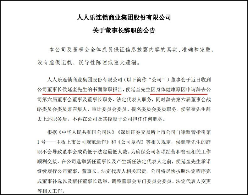 曾經(jīng)與沃爾瑪抗衡、年銷售額突破百億的人人樂,如今卻深陷退市危機。 3月19日,*ST人樂發(fā)布公告稱,公司董事長侯延奎因身體健康原因申請辭去公司第六屆董事會董事及董事長職務、法定代表人職務,同時辭去第六屆董事會戰(zhàn)略委員會委員兼召集人、審計委員會委員、提名委員會委員職務。 侯延奎承諾在公司選舉新任董事長及產(chǎn)生新任法定代表人之前,繼續(xù)履行公司董事、董事長、法定代表人相關職責。公司將盡快完成相關工作。侯延奎未持有公司股份,不存在未履行的承諾事項。這一人事變動,再次引發(fā)市場關注。 圖來源:人人樂公告。 01 六年三換董事長 自2019年西安曲江文投入主人人樂以來,公司董事長職位已更迭三任,平均任期不足兩年。頻繁換帥導致戰(zhàn)略缺乏連續(xù)性,加劇了投資者對治理結(jié)構的質(zhì)疑。 2019年12月,何浩從人人樂創(chuàng)始人何金明手中接過權杖,當選第五屆董事會董事長。在何浩任職期間,人人樂積極探索新業(yè)態(tài),推動新型大賣場Le supermarket、精品超市Le super、社區(qū)生活超市Le life、社區(qū)生鮮超市Le fresh等多業(yè)態(tài)發(fā)展,并發(fā)力線上渠道,建設人人樂園移動商城、人人樂購電子商務平臺等。 2021年9月,人人樂還進入倉儲店賽道,推出新業(yè)態(tài)“人人樂會員折扣店”。然而,這些舉措并未改善公司業(yè)績,2021-2023年期間,公司持續(xù)虧損。 2023年8月,侯延奎經(jīng)董事會選舉成為第六屆董事會董事長、公司法定代表人。侯延奎為人人樂的實控方曲江系的高管,擁有較深的投資背景。他上任后,人人樂的發(fā)展策略開始趨向保守,主導了旗下十多家子、孫公司的出售,推動人人樂在2024年實現(xiàn)3年連虧后的首次盈利。然而,這種“保殼”操作雖實現(xiàn)賬面盈利,但核心業(yè)務虧損未改。 此外,人人樂此前通過出售物流及門店資產(chǎn)短暫改善報表的舉措中,外界曾質(zhì)疑接盤方的資質(zhì)。比如,其中一筆交易出現(xiàn)“延期付款”的情形,而根據(jù)媒體實地調(diào)查訪問,發(fā)現(xiàn)該成都公司的注冊地“查無此公司”。有會計人士指出,若款項未實際到賬,可能影響財務報表真實性。 對于掌舵人更換對公司的影響,人人樂證券部表示,要等新董事長選出來后才能知道公司戰(zhàn)略方向上的變化。 02 多次被實施退市警示 多地門店關閉 1996年成立的人人樂,曾和華潤萬家、新一佳超市并稱為“廣東超市三巨頭”。2010年,人人樂成功登陸A股,收入首次突破了100億元。然而,此后業(yè)績便開始出現(xiàn)下滑,自2016年起多次被實施退市風險警示。 與人事變更信息發(fā)布同日,人人樂年內(nèi)第四次發(fā)布“公司股票可能被終止上市的風險提示”公告。2024年4月22日,人人樂被實行“退市風險警示”和“其他風險警示”處理,股票簡稱由“人人樂”變更為“*ST人樂”。 根據(jù)人人樂2024年業(yè)績預告,期內(nèi)公司營業(yè)收入為14.0億元-14.6億元;歸屬于上市公司股東的凈利潤為4.10億元-4.60億元,同比扭虧為盈。盡管通過出售資產(chǎn)改善公司盈利水平,但2024年人人樂扣除非經(jīng)常性損益后的凈利潤仍為虧損4.75億元-5.25億元。 人人樂扣非凈利潤連續(xù)四年虧損。2021年至2023年人人樂累積虧損超18億元。2024年雖有“賬面盈利”,但主要是因為此前出售子公司股權錄得約10億元投資收益。扣除非經(jīng)常性損益后,人人樂還是虧損。技術性盈利背后,難掩經(jīng)營頹勢。 業(yè)績持續(xù)虧損的背后,是多家門店的關閉。巔峰時期,人人樂門店數(shù)量超百家,但截至2024年6月僅剩83家,較2020年減少近半。 比如,深圳南山的南水店及寶安的錦花店,同是2007年初開業(yè)的老店,兩者都于2021年上半年宣告閉店。閉店原因均是“合同到期因條件太高不續(xù)租”。某點評平臺上,顯示深圳在營業(yè)的人人樂有12家,但根據(jù)網(wǎng)友實地購物反饋,有部分門店已經(jīng)更名。 盤點人人樂門店閉店原因,無外乎租金欠繳、長期虧損及業(yè)態(tài)調(diào)整需求。目前,人人樂關店動作仍在持續(xù)。 據(jù)天津日報報道,人人樂超市在天津市有20多家實體店鋪,隨著2024年底北辰區(qū)宜興埠店和津南區(qū)雙港店閉店后,人人樂在津經(jīng)營10年以上的店鋪全部處于關停狀態(tài),關停原因大部分為欠繳房租、水電費等。 總結(jié) 近年來,面臨競爭加劇、消費者習慣的改變,傳統(tǒng)商超紛紛探索適合自己的轉(zhuǎn)型方向。以步步高、永輝超市為例,它們通過啟動學習胖東來調(diào)改,在2024年取得了顯著效果,為行業(yè)提供了可借鑒的路徑。沃爾瑪則戰(zhàn)略重點發(fā)力山姆會員店,同時升級改造大賣場,以更好地適應消費者需求。區(qū)域零售企業(yè)如華豫佰佳、鮮風生活、雅斯超市等,則通過發(fā)力自有品牌、注重餐飲深加工等方面,在本地市場站穩(wěn)腳跟,取得了不錯的成績。 然而,作為曾經(jīng)的廣東超市三巨頭之一,人人樂在轉(zhuǎn)型之路上卻步履維艱。自被收購以來,盡管多次嘗試倉儲折扣店、精品超市等新業(yè)態(tài),但轉(zhuǎn)型效果始終未能顯現(xiàn)。頻繁換帥、戰(zhàn)略搖擺、核心業(yè)務持續(xù)虧損,使得人人樂逐漸陷入退市危機。如今,隨著董事長辭職和退市風險的加劇,人人樂的未來充滿不確定性。 未來,人人