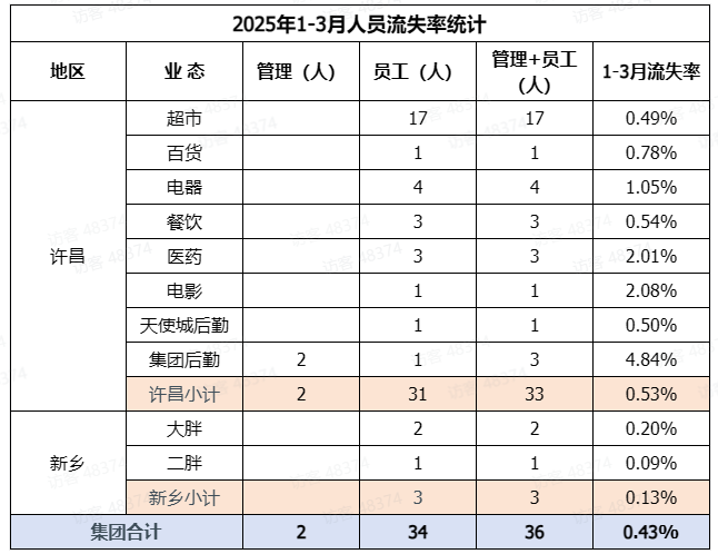 近日,胖東來公開了2025年1至3月份多項內部數(shù)據(jù),包括文明價值獎勵、溫暖基金發(fā)放、人員流失率統(tǒng)計等情況。 數(shù)據(jù)顯示,3月份胖東來給員工發(fā)放了20萬元的“救急周轉金”。據(jù)了解,胖東來溫暖基金由重大疾病基金、救急周轉金借款、特殊關愛基金三項構成。救急周轉金借款是指,胖東來員工本人、配偶、子女或雙方父母出現(xiàn)重大疾病或安全事故需搶救的,可向公司借款1-10萬元用于救急周轉,2小時之內快速審批通道,員工于相關醫(yī)療保險報銷后償還。 在文明價值獎勵方面,2025年1月至3月,共計為7名員工發(fā)放了78000元的“侵犯人格尊嚴補償獎”。在人員流失率方面,2025年1月至3月,管理+員工共計36人離職。 |