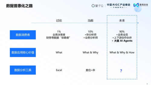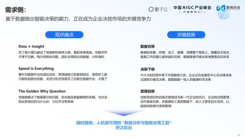 4月16日,由量子位主辦的第三屆《中國AIGC產(chǎn)業(yè)峰會(huì)——萬物皆可AI》在京成功舉辦。在基礎(chǔ)模型技術(shù)縱深突破、AI創(chuàng)新應(yīng)用集中爆發(fā)的產(chǎn)業(yè)背景下,本屆峰會(huì)聚焦前沿技術(shù)落地與行業(yè)深度融合,旨在推動(dòng)AI從"工具化使用"向"價(jià)值化賦能"升級,加速智能技術(shù)與實(shí)體經(jīng)濟(jì)的共生演進(jìn)。 數(shù)勢科技作為AIGC領(lǐng)域的領(lǐng)航者受邀出席,聯(lián)合創(chuàng)始人譚李發(fā)表《企業(yè)級分析決策AI Agent:重構(gòu)數(shù)字化經(jīng)營新范式》主題演講,并重磅發(fā)布《2025智能分析Agent白皮書》,系統(tǒng)闡釋智能分析Agent驅(qū)動(dòng)科學(xué)決策的創(chuàng)新范式。會(huì)上,數(shù)勢科技憑借在AIGC技術(shù)商業(yè)化落地的卓越表現(xiàn),榮獲"2025值得關(guān)注的AIGC企業(yè)"與"2025值得關(guān)注的AIGC產(chǎn)品"雙項(xiàng)大獎(jiǎng),并入選《中國AIGC應(yīng)用全景報(bào)告》,再次以實(shí)踐成果印證其在智能決策領(lǐng)域的創(chuàng)新引領(lǐng)地位。 AI Agent賦能企業(yè)決策新范式:從數(shù)據(jù)準(zhǔn)備到智能行動(dòng)閉環(huán) 數(shù)勢科技譚李圍繞三個(gè)核心議題展開分析。首先從行業(yè)現(xiàn)狀看,當(dāng)前企業(yè)數(shù)據(jù)應(yīng)用呈現(xiàn)明顯分層:僅有10%的業(yè)務(wù)人員能實(shí)時(shí)獲取所需數(shù)據(jù),多數(shù)依賴分析師團(tuán)隊(duì)支持決策,而基層員工常面臨數(shù)據(jù)需求排隊(duì)的困境。傳統(tǒng)數(shù)據(jù)分析架構(gòu)以描述性統(tǒng)計(jì)和歸因分析為主,但已難以滿足數(shù)字化經(jīng)營需求——未來不僅需要支持管理層決策,更要賦能業(yè)務(wù)單元自主用數(shù),甚至讓智能體成為主要數(shù)據(jù)消費(fèi)者。這要求突破"數(shù)據(jù)獲取慢、分析滯后"的瓶頸,建立更敏捷的消費(fèi)范式。 三大趨勢正加速范式變革:其一,數(shù)據(jù)價(jià)值重心"右移",消費(fèi)端需求反向驅(qū)動(dòng)數(shù)據(jù)治理和生產(chǎn)流程重構(gòu);其二,決策權(quán)"下移",烏卡時(shí)代(VUCA)要求組織各層級實(shí)現(xiàn)敏捷自主決策;其三,管理模式"后移",在數(shù)據(jù)和工具的賦能下,給人才更多自主空間,以鼓勵(lì)創(chuàng)新替代微觀管理。這些變革與供給側(cè)技術(shù)突破形成共振——DeepSeek等技術(shù)使大模型成本驟降兩個(gè)量級,開源生態(tài)與AI基礎(chǔ)設(shè)施協(xié)同發(fā)展,正推動(dòng)智能分析從奢侈資源變?yōu)槠栈莨ぞ摺?/div> 從產(chǎn)業(yè)上觀察,AI應(yīng)用呈現(xiàn)容錯(cuò)率與工作流范式的雙維分化。在需要高精準(zhǔn)分析的企業(yè)決策領(lǐng)域,既要突破傳統(tǒng)數(shù)據(jù)消費(fèi)模式,又要解決大模型幻覺對齊等技術(shù)挑戰(zhàn)。數(shù)勢科技聚焦這一高門檻賽道,致力于構(gòu)建新一代智能決策基礎(chǔ)設(shè)施,在成本、精度與實(shí)時(shí)性之間尋找最優(yōu)解,助力企業(yè)跨越數(shù)據(jù)應(yīng)用的"最后一公里"。 SwiftAgent 零門檻用數(shù)、零幻覺分析、零等待決策 SwiftAgent智能分析平臺聚焦企業(yè)級AI應(yīng)用四大核心痛點(diǎn):通過自然語言交互實(shí)現(xiàn)"零門檻用數(shù)",使非技術(shù)人員能即時(shí)獲取精準(zhǔn)業(yè)務(wù)數(shù)據(jù);構(gòu)建語義引擎完成數(shù)據(jù)就緒,將企業(yè)原始數(shù)據(jù)轉(zhuǎn)譯為AI可理解的行業(yè)知識圖譜,確保"零幻覺分析";同時(shí)結(jié)合大模型全局洞察與領(lǐng)域小模型毫秒級響應(yīng)機(jī)制,達(dá)成"零等待決策"。在此基礎(chǔ)集成的智能歸因、模擬預(yù)測、策略生成等決策技能池,形成從數(shù)據(jù)洞察到行動(dòng)落地的完整閉環(huán)。譚李強(qiáng)調(diào):"在數(shù)據(jù)成為新的生產(chǎn)要素的時(shí)代,數(shù)勢科技希望通過AI Agent讓每一個(gè)打工人及時(shí)獲得數(shù)據(jù),讓業(yè)務(wù)人員擺脫數(shù)據(jù)泥沼,在毫秒級響應(yīng)中捕捉商機(jī),使數(shù)據(jù)驅(qū)動(dòng)的決策力真正成為組織進(jìn)化的核心動(dòng)能。" 以金融行業(yè)為例,SwiftAgent賦能某城商行數(shù)十位分支行行長及部門主管,使其能高效獲取動(dòng)態(tài)業(yè)務(wù)洞察,并自動(dòng)生成嵌入SOP的決策報(bào)告。相較于傳統(tǒng)取數(shù)模式,從數(shù)據(jù)查詢到智能歸因再到報(bào)告生成,響應(yīng)速度實(shí)現(xiàn)大幅提升。 以連鎖餐飲行業(yè)為例,SwiftAgent賦能某頭部品牌數(shù)百位店長及區(qū)域督導(dǎo),構(gòu)建起"總部戰(zhàn)略-門店執(zhí)行"的實(shí)時(shí)協(xié)同機(jī)制。系統(tǒng)深度融合結(jié)構(gòu)化運(yùn)營數(shù)據(jù)與非結(jié)構(gòu)化政策文檔,為管理者生成智能數(shù)據(jù)分析報(bào)告與動(dòng)態(tài)決策建議。店長通過手機(jī)端智能助手,可實(shí)時(shí)獲取門店異常預(yù)警、總部政策解讀及分時(shí)段營銷建議等。 2025智能分析Agent 白皮書 正式發(fā)布 峰會(huì)現(xiàn)場,聯(lián)合創(chuàng)始人譚李正式發(fā)布了《2025智能分析Agent 白皮書 ——智能分析Agent如何驅(qū)動(dòng)企業(yè)科學(xué)決策》,并譚李指出:"在智能分析領(lǐng)域,數(shù)勢科技不僅率先推出創(chuàng)新產(chǎn)品,更持續(xù)深耕