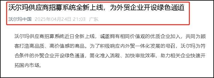 繼永輝、華潤(rùn)萬(wàn)家、聯(lián)華超市、大潤(rùn)發(fā)、盒馬、七鮮超市等多家商超企業(yè)紛紛出手助力外貿(mào)企業(yè)拓寬內(nèi)銷(xiāo)渠道后,沃爾瑪也正式上線(xiàn)了供應(yīng)商招募系統(tǒng),為外貿(mào)企業(yè)開(kāi)設(shè)綠色通道。 01 沃爾瑪中國(guó) 宣布助力外貿(mào)企業(yè)拓寬內(nèi)銷(xiāo) 《職業(yè)零售網(wǎng)》獲悉,4月24日,沃爾瑪中國(guó)發(fā)布消息稱(chēng),其供應(yīng)商招募系統(tǒng)近日全新上線(xiàn),誠(chéng)邀擁有相同價(jià)值觀的優(yōu)質(zhì)企業(yè)加入,共同為顧客打造高品質(zhì)、高價(jià)值感的商品。為了積極響應(yīng)內(nèi)外貿(mào)一體化發(fā)展的號(hào)召,沃爾瑪為符合條件的外貿(mào)企業(yè)開(kāi)設(shè)了綠色通道,簡(jiǎn)化準(zhǔn)入流程、加快審批效率,助力相關(guān)企業(yè)快速開(kāi)拓國(guó)內(nèi)市場(chǎng)。 近幾年,沃爾瑪加速轉(zhuǎn)型升級(jí),聚焦城市大眾中產(chǎn)小家庭,致力于通過(guò)打造差異化商品、以品質(zhì)為前提的穩(wěn)定質(zhì)價(jià)比以及便捷的全渠道購(gòu)物體驗(yàn),成為顧客最信任的全渠道購(gòu)物首選地,讓顧客“花得少,過(guò)得好”。全國(guó)數(shù)百家沃爾瑪門(mén)店均可通過(guò)沃爾瑪APP、小程序及各大電商平臺(tái),提供最快30分鐘“極速達(dá)”、“準(zhǔn)時(shí)達(dá)”、“次日達(dá)”和全國(guó)配送服務(wù)。 沃爾瑪將與供應(yīng)商攜手構(gòu)建誠(chéng)信、簡(jiǎn)單、敏捷、平等互利的零供關(guān)系,洞察共享,商品共創(chuàng),并依托沃爾瑪高效的物流配送體系,讓更多顧客享受到高品質(zhì)、高價(jià)值感的商品,助力合作伙伴實(shí)現(xiàn)持續(xù)增長(zhǎng)和長(zhǎng)期回報(bào)。 歡迎有合作意向的企業(yè)掃描二維碼或訪問(wèn)下方網(wǎng)址了解詳細(xì)要求,并填寫(xiě)提交合作意向申請(qǐng)。如果商品符合我們的需求,沃爾瑪采購(gòu)人員將與貴方聯(lián)系。 02 首批外貿(mào)優(yōu)品已上架 此前,我們統(tǒng)計(jì)了永輝、華潤(rùn)萬(wàn)家、聯(lián)華超市、大潤(rùn)發(fā)、盒馬、七鮮超市等30多家零售企業(yè)助力外貿(mào)企業(yè)拓展內(nèi)銷(xiāo)渠道。截至4月22日,據(jù)我們不完全統(tǒng)計(jì),永輝、聯(lián)華超市、華潤(rùn)萬(wàn)家、蘇果等超市已經(jīng)完成了第一批外貿(mào)優(yōu)品的極速上架。 永輝超市:4月22日,在“中國(guó)制造 點(diǎn)亮內(nèi)需——外貿(mào)優(yōu)品進(jìn)永輝”活動(dòng)上,永輝超市宣布首批2個(gè)品牌的9個(gè)商品通過(guò)綠色通道成功在北京喜隆多店、福州奧體店、杭州濱江寶龍店、臨平萬(wàn)達(dá)店4家門(mén)店上架售賣(mài)。后續(xù)將陸續(xù)擴(kuò)大外貿(mào)商品及售賣(mài)門(mén)店數(shù)量,預(yù)計(jì)在4月底形成較大規(guī)模。截至4月22日12:00,專(zhuān)項(xiàng)郵箱已收到超500封合作郵件,并與超300家優(yōu)質(zhì)供應(yīng)鏈企業(yè)進(jìn)入洽談階段。品類(lèi)覆蓋范圍廣泛,主要集中在冷凍食品、休閑零食、家居用品等,其中包括長(zhǎng)期為山姆、開(kāi)市客供貨的中國(guó)制造企業(yè)。 華潤(rùn)萬(wàn)家:4月18日,在“外貿(mào)優(yōu)品中華行”廣州站上,華潤(rùn)萬(wàn)家與深圳狂響科技、廣東省紡織品進(jìn)出口股份有限公司進(jìn)行了合作意向簽約。首批合作商品——外貿(mào)出口服裝及優(yōu)質(zhì)小家電(含藍(lán)牙音響等產(chǎn)品)于4月19日在華潤(rùn)萬(wàn)家龍崗布吉萬(wàn)象匯店線(xiàn)上及線(xiàn)下率先上市。據(jù)透露,華潤(rùn)萬(wàn)家早前已成立由董事長(zhǎng)為組長(zhǎng)的助力外貿(mào)企業(yè)轉(zhuǎn)內(nèi)銷(xiāo)工作專(zhuān)班,通過(guò)商品部門(mén)統(tǒng)籌四大渠道資源,建立分大區(qū)、分渠道的快速響應(yīng)機(jī)制,將商品引進(jìn)周期快速壓縮,為外貿(mào)企業(yè)提供全流程支持。目前,華潤(rùn)萬(wàn)家已成功對(duì)接超100家外貿(mào)企業(yè),產(chǎn)品涵蓋竹木制品、冷凍水產(chǎn)等8大品類(lèi)。第二批合作商品將于近期在全國(guó)各地門(mén)店陸續(xù)上市。 世紀(jì)聯(lián)華:4月23日,世紀(jì)聯(lián)華宣布第一批優(yōu)選的外貿(mào)好物已經(jīng)通過(guò)其渠道與消費(fèi)者見(jiàn)面。從超市與廠家接觸溝通到最終商品擺上貨架,僅用了大約3個(gè)工作日,而按常規(guī)流程,這個(gè)時(shí)間可能在30個(gè)工作日左右。據(jù)了解,首批外貿(mào)好物已在世紀(jì)聯(lián)華的36家門(mén)店上架,后續(xù)線(xiàn)上銷(xiāo)售、團(tuán)購(gòu)也將逐步展開(kāi)。下周,還將有7款商品(包括百貨和食品)陸續(xù)上架。此外,還有42家外貿(mào)企業(yè)正在洽談中。 蘇果超市:4月23日,華潤(rùn)萬(wàn)家旗下蘇果超市上架了多款外貿(mào)優(yōu)品。來(lái)自浙江味老大工貿(mào)有限公司(簡(jiǎn)稱(chēng)“味老大”)的竹砧板、木鏟、湯勺等多個(gè)系列產(chǎn)品,以及來(lái)自常州英諾威家居用品有限公司(簡(jiǎn)稱(chēng)“英諾威”)的多款旅行毯,在蘇果超市清涼門(mén)店率先上市,為江蘇消費(fèi)者帶來(lái)優(yōu)質(zhì)外貿(mào)商品,以實(shí)際行動(dòng)支持中國(guó)制造。目前,華潤(rùn)萬(wàn)家已成功對(duì)接超150家外貿(mào)企業(yè)。蘇果超市作為江