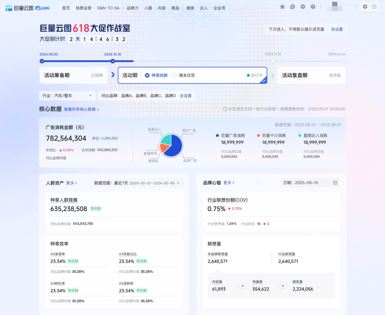 一年一度的年中大促618即將開始,商家該如何在激烈的流量競爭中,搶得先機?大促作戰(zhàn)狀態(tài)下,商家應(yīng)關(guān)注哪些營銷數(shù)據(jù)來精準規(guī)劃經(jīng)營策略,推動GMV穩(wěn)健增長? 為幫助商家高效地做好大促經(jīng)營規(guī)劃,實現(xiàn)生意爆發(fā),巨量云圖上線「618大促作戰(zhàn)室」,一站式提供全大促周期的營銷數(shù)據(jù)監(jiān)測和追蹤支持,助力商家科學鎖定用戶心智,精準制定人群拓展落地策略。 巨量云圖「618大促作戰(zhàn)室」通過聚焦大促籌備期、蓄水種草期和打爆期三個周期來連通整體營銷路徑,同時基于商家人群資產(chǎn)、品牌心智資產(chǎn)、商品人群資產(chǎn)等核心數(shù)據(jù),結(jié)合行業(yè)熱點洞察及渠道分析為商家提供大促指導,并串聯(lián)了巨量云圖品牌心智度量能力。商家通過巨量云圖「618大促作戰(zhàn)室」,可以快速找到大促不同階段需要觀測的核心指標和落地策略,種收提效,帶動生意爆發(fā)。 品牌心智度量,助商家差異化心智突圍 心智即指消費者心中對品牌的認知和態(tài)度。占領(lǐng)并持續(xù)提升用戶心智,是商家生意實現(xiàn)可持續(xù)增長的必要條件。品牌心智建設(shè)離不開商家的長期運營,而大促活動則可幫助商家在短期內(nèi)實現(xiàn)差異化心智突圍,為生意爆發(fā)筑牢基礎(chǔ)。 巨量云圖基于平臺海量用戶主動發(fā)聲與互動的數(shù)據(jù),以及用戶對品牌心智的聯(lián)想行為,延伸出了行業(yè)聯(lián)想份額(提到本品類,用戶多大概率能想到我這個品牌?)、本品聯(lián)想占比(提到我這個品牌,多大概率想到這個心智?)等細分指標維度,幫助商家科學度量自身品牌形象在消費者心中的份額,并基于此精準制定差異化的營銷策略,積累品牌心智資產(chǎn)。 大促中,商家可通過巨量云圖「618大促作戰(zhàn)室」中的“行業(yè)聯(lián)想份額”和“本品聯(lián)想占比”等數(shù)據(jù)狀況,科學分析品牌心智情況,并找到自身在商品、場景、品牌形象三大方面的優(yōu)勢心智,結(jié)合優(yōu)質(zhì)內(nèi)容和大促節(jié)奏放大優(yōu)勢,促進消費轉(zhuǎn)化提升。 某美妝品牌商家在去年雙11大促期間,借助巨量云圖心智度量工具,先洞察探索出了商品的核心優(yōu)勢心智。并在大促中通過系列內(nèi)容營銷策略,多維放大并強化產(chǎn)品“抗老”心智,成功奪下行業(yè)聯(lián)想份額,縮小了與競品間的生意差距。 生意差異背后,是品牌占領(lǐng)消費者心智強度的差異。同類目、同價格帶商品下,品牌心智越強,大促生意越好。商家還可以在巨量云圖「618大促作戰(zhàn)室」洞察品牌心智維度下的競爭分析、人群畫像、觸點內(nèi)容等信息,借鑒行業(yè)靈感,優(yōu)化自身營銷內(nèi)容方向。即以優(yōu)質(zhì)內(nèi)容,向?qū)Φ娜苏f對的話,在目標客群心中建立更穩(wěn)固、差異化的心智。 聚焦行業(yè)特色人群,助商家拓新客、提增長 對目標人群的精準識別與定位,是品牌做大促營銷的第一步。大促中,商家流量競爭激烈,消費者選擇豐富,消費決策也更加復(fù)雜。在錨定潛在目標客群的基礎(chǔ)上,商家可以更便捷、高效地開展營銷活動,持續(xù)滲透品牌價值,提升消費轉(zhuǎn)化。 在本次「618大促作戰(zhàn)室」,巨量云圖全新升級“行業(yè)特色人群”和“行業(yè)細分人群”兩大人群包,為品牌提供垂直領(lǐng)域細分人群洞察,幫助品牌進行精細化人群運營,提升大促期間搶奪高潛客群的能力。 “行業(yè)特色人群”是抖音最新發(fā)布的,以行業(yè)屬性為核心,并結(jié)合用戶消費決策鏈路(購買場景、品類偏好、價格敏感度等)特征的抖音特色人群,覆蓋美妝、服飾、運動、手機、寵物五大行業(yè),構(gòu)建高質(zhì)量的5A人群集合;“行業(yè)細分人群”是各個行業(yè)的核心人群分類,包括行業(yè)興趣、行業(yè)購買、行業(yè)復(fù)購等人群,會覆蓋9大消費品類行業(yè)。通過對行業(yè)人群特點的挖掘,巨量云圖「618大促作戰(zhàn)室」可幫品牌快速進行產(chǎn)品品類定位、圈定目標人群,實現(xiàn)大促增長。 另外,大促中,商家借助巨量云圖「618大促作戰(zhàn)室」的兩大人群標簽,還可以更好地認識品牌目標客群,并與之建立聯(lián)系,進行高質(zhì)量“對話溝通”,提升品牌人群資產(chǎn)優(yōu)勢。 熱點洞察疊加貨品推爆指導,助商家提升大促競爭力 借勢行業(yè)熱點斬獲消費者關(guān)注,是商家在大促中搶占流量的有效舉措。 大促中,巨量云圖可基于實時網(wǎng)絡(luò)動態(tài)內(nèi)容,分析用戶內(nèi)容偏好,在細分場景找到熱點內(nèi)容和大眾情緒共鳴點,進而幫助商家搭乘“熱點快車”,優(yōu)化大促營銷素材,借勢打造爆款。同時,巨量云圖還對行業(yè)熱點進行洞察分析,讓商家及時把握熱點貨品趨勢,高效調(diào)整貨盤布局,快速打造大促爆品。 商家可基于「618大促作戰(zhàn)室」攻略和巨量云圖系統(tǒng)支持,優(yōu)化貨品標簽和賣點話術(shù),打造優(yōu)質(zhì)內(nèi)容,個性化展現(xiàn)貨品特性,激發(fā)目標客群消費興趣。 全面策略指導,助商家贏大促全域爆發(fā) 大促中,商家可通過布局短視頻、抖音商城、品牌自播、達播合作等多元化渠道,來提升消費者觸達范圍,帶動消費轉(zhuǎn)化。 巨量云圖在「618大促作戰(zhàn)室