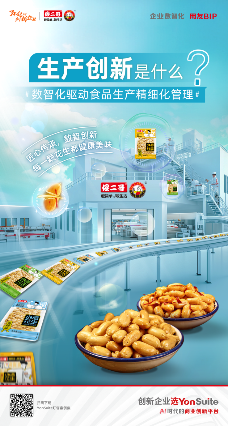 6月10日,工業(yè)和信息化部等七部門聯(lián)合印發(fā)《食品工業(yè)數(shù)字化轉型實施方案》(以下簡稱《方案》),部署了“四大行動”和“十八項具體措施”,旨在加快推動數(shù)字技術全面賦能食品工業(yè)發(fā)展,吹響了中國食品工業(yè)邁向數(shù)智化新時代的號角。 這一國家層面的政策方案,不僅為行業(yè)發(fā)展指明了方向,也為像用友這樣的數(shù)智化解決方案服務商提供了廣闊的舞臺,共同擘畫食品工業(yè)高質量發(fā)展的宏偉藍圖。 政策東風勁吹 食品工業(yè)數(shù)字化轉型勢在必行 《方案》明確提出,到2027年,重點食品企業(yè)經營管理數(shù)字化普及率達80%,規(guī)模以上食品企業(yè)關鍵工序數(shù)控化率、數(shù)字化研發(fā)設計工具普及率均達到75%,并培育一批智能工廠、高標準數(shù)字化園區(qū)和典型應用場景。 這一系列目標,彰顯了國家推動食品工業(yè)從傳統(tǒng)制造向智能制造、從粗放管理向精益運營轉變的決心。 食品工業(yè)作為關系國計民生的重要支柱產業(yè),其數(shù)字化轉型具有多重意義: 01提升質量與安全 通過數(shù)字化手段實現(xiàn)從原料采購、生產加工、倉儲物流到銷售終端的全程可追溯,保障“舌尖上的安全”。 02降本增效 優(yōu)化生產流程,提高設備利用率,降低能耗物耗,提升企業(yè)整體運營效率和盈利能力。 03驅動創(chuàng)新 基于大數(shù)據(jù)分析消費者需求,賦能產品研發(fā)與精準營銷,快速響應市場變化,提升產品競爭力。 04增強產業(yè)鏈韌性 實現(xiàn)產業(yè)鏈上下游企業(yè)間的信息共享與業(yè)務協(xié)同,提升整個產業(yè)的抗風險能力和協(xié)同效率。 當前,我國食品工業(yè)雖已取得一定數(shù)字化成果,如乳制品、飲料等領域龍頭企業(yè)的智能工廠已達世界領先水平,但整體而言,廣大中小企業(yè)數(shù)字化水平仍有較大提升空間,面臨著數(shù)據(jù)孤島、技術應用不深、管理模式落后等挑戰(zhàn)。此次《方案》的出臺,正是為了破解這些難題,推動行業(yè)整體躍升。 用友YonSuite 食品工業(yè)數(shù)智化轉型的“全能引擎” 面對食品工業(yè)數(shù)字化轉型的迫切需求和《方案》提出的宏偉目標,用友YonSuite憑借其“數(shù)智飛輪”的先進理念和覆蓋企業(yè)經營管理全場景的產品能力,為食品工業(yè)企業(yè)提供了強有力的支撐。 YonSuite作為AI時代的商業(yè)創(chuàng)新平臺,將企業(yè)AI深度嵌入財務、供應鏈、生產制造、營銷、人力、協(xié)同辦公等核心業(yè)務領域,為不同規(guī)模、不同業(yè)態(tài)的食品企業(yè)提供一體化、定制化的AI驅動型數(shù)智化解決方案。 賦能消費品行業(yè)“增長提效” 食品行業(yè)本質上屬于大消費領域,YonSuite針對消費品行業(yè)的特性,提供了從前端營銷獲客、渠道管理、會員運營到后端供應鏈協(xié)同、訂單履約的全鏈路數(shù)字化方案。 全渠道營銷與新零售:支持線上線下多渠道融合,打通B2C、O2O等多種業(yè)務模式,幫助食品企業(yè)精準觸達消費者,提升品牌影響力。 智能供應鏈:通過大數(shù)據(jù)分析優(yōu)化采購、庫存和物流,降低供應鏈成本,提高訂單響應速度和交付準確率,尤其對于保質期敏感的食品至關重要。 數(shù)據(jù)驅動決策:匯聚全域經營數(shù)據(jù),提供多維度分析報表,幫助企業(yè)洞察市場趨勢和消費者偏好,支持產品創(chuàng)新和營銷策略優(yōu)化。 驅動制造行業(yè)“精益管理、智能制造” 《方案》強調提升關鍵工序數(shù)控化率和數(shù)字化研發(fā)設計工具普及率,培育智能工廠。YonSuite在智能制造領域同樣表現(xiàn)出色。 PLM產品生命周期管理:支持食品配方管理、研發(fā)過程管理,加速新品上市。 MES制造執(zhí)行系統(tǒng):實現(xiàn)生產過程的透明化、精益化管控,實時采集生產數(shù)據(jù),優(yōu)化排產調度,提高生產效率和產品質量。 WMS智能倉儲管理:結合條碼、RFID等技術,實現(xiàn)倉庫作業(yè)的自動化和智能化,精確管理庫存,減少貨損。 質量追溯體系:建立從原料到成品的全程質量追溯鏈條,一旦出現(xiàn)問題,能夠快速定位并召回,保障食品安全。 設備智能運維:通過物聯(lián)網技術連接生產設備,實現(xiàn)設備狀態(tài)的實時監(jiān)控和預測性維護,減少非計劃停機時間。 數(shù)智化 傳統(tǒng)食品制造企業(yè)煥新生機的關鍵 以國內知名的休閑食品企業(yè)傻二哥食品為例,其在發(fā)展過程中,通過擁抱數(shù)智化,成功實現(xiàn)了從傳統(tǒng)食品制造向“智造”先鋒的蛻變。通過YonSuite,傻二哥食品不僅優(yōu)化了全渠道的營銷和管理,實現(xiàn)了對經銷商網絡和消費者畫像的精準分析,為“小酒花生”等爆品的成功孵化提供了數(shù)據(jù)支撐。 更重要的是,在生產端實現(xiàn)了精細化的成本控制和高效的供應鏈協(xié)同,解決了傳統(tǒng)管理模式下的痛點。 范方雄先生所言“數(shù)智化轉型是企業(yè)運營中的重要工具,也是企業(yè)發(fā)展的大勢所趨”,以及“通過YonSuite平臺,我們不僅提高了生產效率,還確保了產品的新鮮度和美味”,這正是數(shù)智化賦能傳統(tǒng)食品企業(yè)實現(xiàn)價值躍升的生動體現(xiàn)。 傻二哥食品的實踐證明,數(shù)智化不僅是技術工具的應用,更是企業(yè)運營理念和管理模式的深刻變革