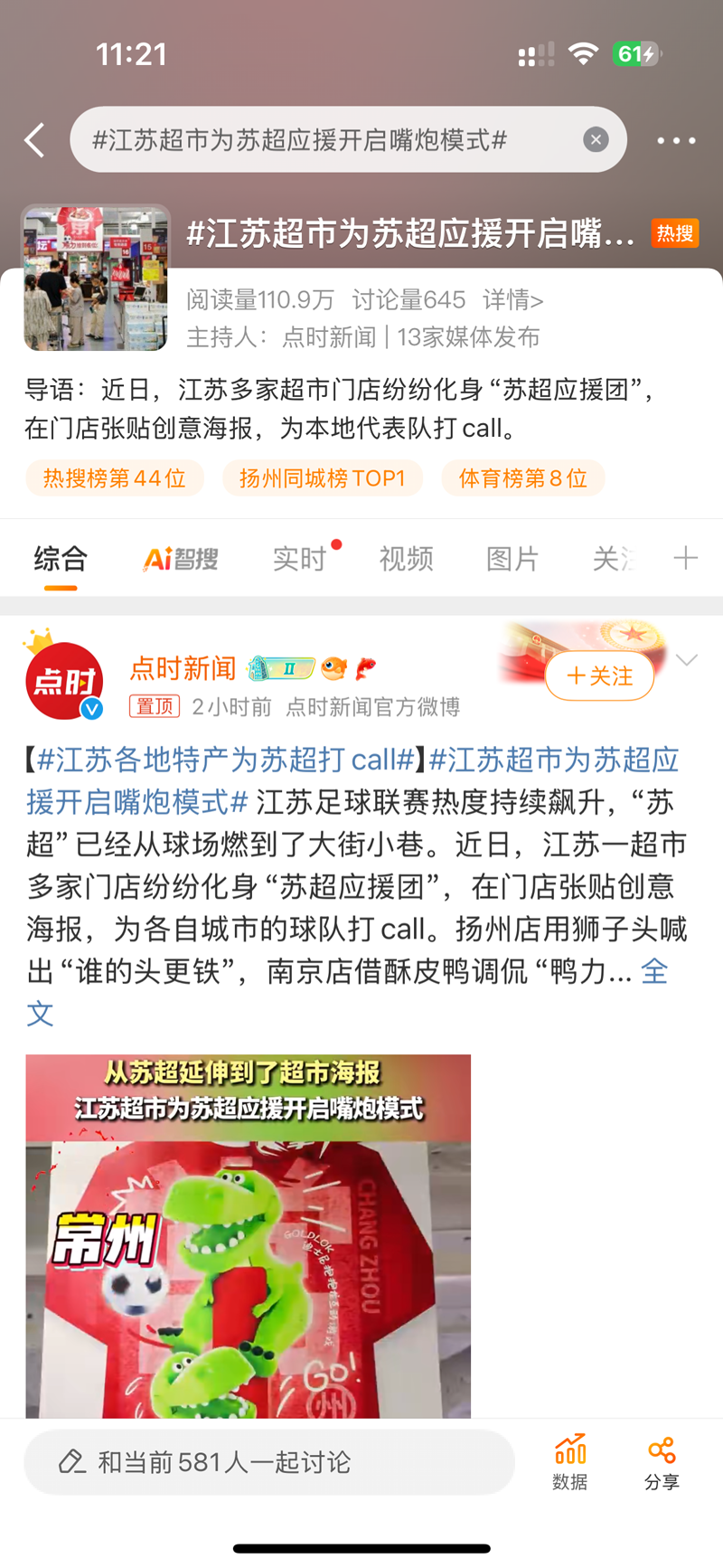 2025年蘇超燃爆全國,屢創(chuàng)新紀錄。這個由江蘇省舉辦的首屆省級城市足球聯(lián)賽,以意想不到的速度掀起前所未有的熱潮,民眾自發(fā)創(chuàng)作的熱梗不斷,持續(xù)創(chuàng)下熱度新紀錄,不僅在今日頭條、抖音、微博等平臺“喜提”數(shù)百個熱搜,相關(guān)話題閱讀量更是超過百億次,一躍成為社交話題中的“頂流”! 蘇超一開始就賦予獨特煙火氣,各種玩梗海報備受全國網(wǎng)友青睞。如,“江蘇十三太保打起來了(江蘇省有13個地級市)”“比賽第一,友誼第十四”“沒有假球,全是世仇”“天時、地利、人不和”……都讓人捧腹不已。隨著“蘇超”熱度持續(xù)上漲,還在不斷上演各種新梗,徐州對戰(zhàn)宿遷被稱為“劉邦老家和項羽故里的榮譽之戰(zhàn)”,南通對陣南京被稱為“南哥之戰(zhàn)”,而常州由于連輸四場,被網(wǎng)友開啟地獄級的削筆畫,從“常州”先后削成“吊州”、“巾州”、“丨州”,最后變成“O州”…… 全民掀起足球熱,M會員店“花式助威”登上熱搜 如今,隨著“蘇超”熱度持續(xù)飆升,“江蘇十三太!钡母鞔蟪、景區(qū)、酒店也紛紛加入這場應援浪潮! 日前,國內(nèi)會員制商店代表,大潤發(fā)M會員店更是因其嘴炮模式的“花式應援”登上了微博熱搜,位居熱搜榜第44位,揚州同城榜TOP1、體育榜第8位,將助威推上新高潮。 據(jù)悉,作為中國本土會員制超市標桿,大潤發(fā)M會員店目前在全國開出7家門店,其中,6家就位于蘇超十三太保城市,分別位于揚州、南京、常州、常熟、無錫、江陰,另1家位于浙江嘉興。 此次面對“蘇超”大戰(zhàn),M會員店的江蘇6家門店,光速掛出了宣戰(zhàn)海報,以江蘇各城市特產(chǎn)為“嘴替”,揚州獅子頭、南京酥皮鴨、常州抱抱龍、無錫陽山水蜜桃、常熟鮮肉酥餅、江陰娟姍牛奶為代表加入蘇超啦啦隊,為所在城市爭奪本屆“江蘇省會冠名權(quán)”加油助威。 揚州M會員店用獅子頭喊出“誰的頭更鐵”;南京店借酥皮鴨調(diào)侃“鴨力給到”各位;常州店搬出迪士尼抱抱龍霸氣放話“龍的傳人從不認輸”;常熟更是散裝到街道,以琴川街道命名的“琴川小鮮肉”——鮮肉酥餅提出“酥麻了,我要申請出戰(zhàn)”;無錫陽山水蜜桃霸氣喊出“休想逃出我的五指山”;江陰娟姍牛奶更是毫不客氣表示“我的主場 不允許有一點水分”,好不熱鬧!隔壁浙江嘉興的門店還跨省“吃瓜”——“你們這群老六戲挺足”!隔空互喊嘴炮式的散裝應援,笑翻不少網(wǎng)友。 對于M會員店的這波“花式應援”,不少顧客還是給出了好評。有顧客表示“還蠻有趣的,超市挺會玩!”而M會員店更是誓將這場“花式應援”進行到底,繼續(xù)為各自城市加油、打call,爭奪“蘇超南哥”! 目前,這場席卷全國的“蘇超“熱還在持續(xù)升溫,本周六又是兩場精彩對決,宿遷隊VS鹽城隊(蘇北德比),常州隊VS南京隊(抱抱龍VS酥皮鴨),被網(wǎng)友調(diào)侃已經(jīng)失去姓名變“O州”的常州又來了,據(jù)媒體報道門票早已售罄,有望再次刷新單場紀錄,那么,你比較看好誰? |