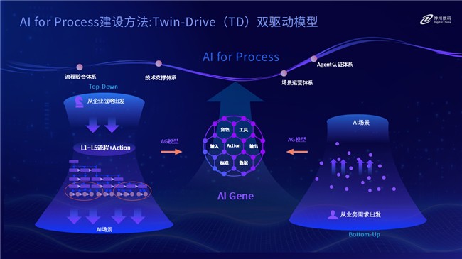 在2025年世界人工智能大會(huì)(WAIC)上,神州數(shù)碼聯(lián)合德勤中國、中國信息通信研究院共同發(fā)布《AI for Process企業(yè)級(jí)流程數(shù)智化變革》藍(lán)皮書。神州數(shù)碼首席信息官李晨龍系統(tǒng)的闡釋了藍(lán)皮書的理念、路徑與實(shí)踐,為企業(yè)邁入以AI為核心驅(qū)動(dòng)的流程智能化時(shí)代提供完善的方法論與工具支撐。 AI時(shí)代的流程重構(gòu)新范式 李晨龍?jiān)谘葜v中指出,傳統(tǒng)企業(yè)的數(shù)字化轉(zhuǎn)型以信息系統(tǒng)建設(shè)為核心,如CRM、ERP、HR系統(tǒng)曾極大提高了業(yè)務(wù)標(biāo)準(zhǔn)化與運(yùn)行效率。然而隨著系統(tǒng)數(shù)量的增加,企業(yè)流程被割裂于不同系統(tǒng)之間,形成數(shù)據(jù)孤島,難以支撐當(dāng)下對(duì)靈活響應(yīng)與智能決策的需求,亟需AI進(jìn)行智能升級(jí)。 他表示,當(dāng)前大模型技術(shù)已在多個(gè)專業(yè)領(lǐng)域超越人類能力,但企業(yè)場(chǎng)景中的AI落地仍困難重重。通用大模型雖然強(qiáng)大,但缺乏企業(yè)特有的數(shù)據(jù)與專業(yè)知識(shí)積累。未來的企業(yè)AI應(yīng)用須走向“通專融合”的路徑,利用開源大模型與企業(yè)內(nèi)部數(shù)據(jù)共建專業(yè)化智能體,實(shí)現(xiàn)低成本、高適配的AI應(yīng)用體系。 如何構(gòu)建企業(yè)的通專融合的模型,關(guān)鍵在于把握業(yè)務(wù)模式、技術(shù)范式與管理方法的交匯點(diǎn)——流程!爱(dāng)前AI仍停留在單點(diǎn)應(yīng)用,尚未實(shí)現(xiàn)流程層面的重構(gòu)與再造,而“AI for Process”正是以此為目標(biāo),推動(dòng)企業(yè)實(shí)現(xiàn)全面感知、快速?zèng)Q策與持續(xù)優(yōu)化! 從理念到落地:雙路徑驅(qū)動(dòng)流程智能化 為了幫助企業(yè)系統(tǒng)性推進(jìn)AI for Process的落地,神州數(shù)碼基于大量實(shí)踐提出“Twin-Drive雙驅(qū)動(dòng)模型”,即“自頂向下”與“自底向上”相結(jié)合的推進(jìn)方法。 在“自頂向下”路徑中,企業(yè)從戰(zhàn)略出發(fā),將業(yè)務(wù)流程拆解為L1至L5多層級(jí)體系,再在L5級(jí)業(yè)務(wù)活動(dòng)中進(jìn)一步識(shí)別AI應(yīng)用場(chǎng)景。這種方式可系統(tǒng)性優(yōu)化流程,但需高層驅(qū)動(dòng)、全局規(guī)劃。它能確保 AI 應(yīng)用場(chǎng)景的全面覆蓋,避免出現(xiàn)場(chǎng)景遺漏或執(zhí)行斷點(diǎn),確保各場(chǎng)景間形成有機(jī)串聯(lián),構(gòu)建起完整的 AI 流程生態(tài)。而“自底向上”的方法則更貼近一線實(shí)踐:從具體操作出發(fā),梳理流程鏈條,在已有流程中尋找AI切入點(diǎn),逐步沉淀價(jià)值,適用于局部創(chuàng)新與快速試點(diǎn)。 無論采用哪種路徑,最終都要落實(shí)到AI場(chǎng)景的精準(zhǔn)描述。為此,神州數(shù)碼提出“AI Gene模型”作為統(tǒng)一語言,幫助企業(yè)精準(zhǔn)描述每一個(gè)AI場(chǎng)景的角色、輸入輸出、操作規(guī)則與數(shù)據(jù)需求,確保AI與流程深度融合、可持續(xù)優(yōu)化。 分享中,李晨龍借助神州數(shù)碼的自身實(shí)踐和醫(yī)療行業(yè)的客戶案例充分解釋了DT模型的應(yīng)用方法及效果:通過自頂向下的方式,對(duì)LTC進(jìn)行流程重塑,構(gòu)建并快速部署多個(gè)AI智能體,智能體從創(chuàng)建到迭代周期從90天縮短至15天,實(shí)現(xiàn)跨模塊協(xié)同與業(yè)務(wù)響應(yīng)提速;同時(shí),在某醫(yī)藥企業(yè)中,通過自底向上的方法挖掘法規(guī)收集流程中的“隱性操作鏈條”,部署智能體后每人每月節(jié)省2.2人天,顯著提升流程效率與人力效能。 技術(shù)范式轉(zhuǎn)型:構(gòu)建AI原生的企業(yè)架構(gòu) 在業(yè)務(wù)模式和管理方法之外,企業(yè)流程的智能化還需要匹配技術(shù)范式作為支撐。李晨龍強(qiáng)調(diào),當(dāng)前企業(yè)流程承載在多個(gè)異構(gòu)系統(tǒng)中,如同盲人摸象,難以形成整體感知。 為此,神州數(shù)碼提出AI原生的企業(yè)數(shù)智化參考架構(gòu),幫助企業(yè)看到“一整頭大象”, 其核心由兩大平臺(tái)構(gòu)成:Agent中臺(tái)與智能流程工作臺(tái)。 Agent中臺(tái)匯聚企業(yè)內(nèi)外的系統(tǒng)、數(shù)據(jù)、知識(shí)和模型資源,通過統(tǒng)一調(diào)度與管理,解決智能體生產(chǎn)的復(fù)雜性。智能流程工作臺(tái)則將L1-L5流程配置落地,實(shí)現(xiàn)流程執(zhí)行與系統(tǒng)操作的一致性,并支持流程變更的靈活重構(gòu)與數(shù)據(jù)積累。 他表示,“Agent中臺(tái)和智能流程工作臺(tái)作為AI for Process的兩大利器,在絕大多數(shù)客戶的實(shí)施過程中發(fā)揮關(guān)鍵作用,使AI能力能夠在企業(yè)流程中不斷快速迭代,持續(xù)發(fā)揮價(jià)值! 面向未來:構(gòu)建AI就緒企業(yè),邁向智能共生 推進(jìn)AI for Process不僅僅是技術(shù)層面的重構(gòu),更是一場(chǎng)深刻的組織與認(rèn)知變革。李晨龍表示,企業(yè)要實(shí)現(xiàn)真正的智能化發(fā)展,還需具備“AI就緒能力”,包括知識(shí)治理體系建設(shè)、組織流程重塑、復(fù)合型人才培養(yǎng)與產(chǎn)業(yè)生態(tài)協(xié)同。 作為衡量未來企業(yè)應(yīng)用AI程度的指標(biāo),此次藍(lán)皮書中首次提出了“AI滲透率”概念——即在企業(yè)業(yè)務(wù)流程中AI操作