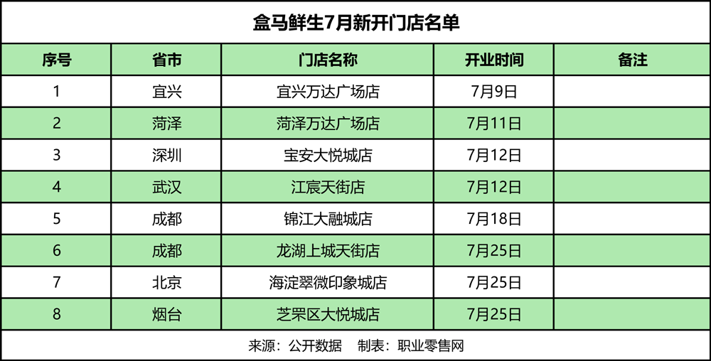 自3月初公布新財(cái)年近100家拓店計(jì)劃以來,盒馬持續(xù)推進(jìn)門店布局,截至7月31日已新增32家門店。從節(jié)奏看,1月新開6家,4月2家,5月7家,6月9家,7月8家,呈現(xiàn)穩(wěn)步擴(kuò)張態(tài)勢,進(jìn)一步完善全國城市覆蓋網(wǎng)絡(luò)。 7月新增的8家門店中,宜興、菏澤、煙臺(tái)三店為所在城市首店,標(biāo)志著盒馬在江蘇、山東等地的滲透進(jìn)一步加深;其余門店則通過升級(jí)場景、優(yōu)化品類,強(qiáng)化區(qū)域市場優(yōu)勢。 7月9日,宜興首店位于萬達(dá)廣場。5000㎡空間涵蓋盒馬烘焙、海鮮水產(chǎn)等全品類,從生鮮到日用品一站式覆蓋,填補(bǔ)當(dāng)?shù)馗叨松r零售空白,成為宜興品質(zhì)生活新地標(biāo)。 7月11日,菏澤首店位于萬達(dá)廣場。作為魯西地區(qū)首家盒馬,不僅帶來全球優(yōu)質(zhì)商品,更依托當(dāng)?shù)?“芍藥盒馬村” 資源,2023年已供應(yīng)超10款芍藥鮮切花,實(shí)現(xiàn) “全球商品進(jìn)菏澤、本地特產(chǎn)出山東” 的雙向流通,助力區(qū)域農(nóng)產(chǎn)品上行。同日,深圳寶安大悅城店面積 3500㎡,以“鮮魚現(xiàn)宰”“千款火鍋食材” 為特色,搭配供港標(biāo)準(zhǔn)商品,服務(wù)周邊 300 萬居民。武漢江宸天街店由原泛海店搬遷升級(jí)而來,以冰杯、冷凍水果等夏日冰品精準(zhǔn)契合暑期需求,完成存量門店的體驗(yàn)迭代。 7 月 18 日,成都錦江大融城店面積 3000㎡。通過 “好吃一條街”“輕食島” 等場景打造煙火氣體驗(yàn),商品種類超 6000 種,升級(jí)后的盒馬花園引入繡球、荷花等當(dāng)季鮮切花并提供線上配送服務(wù),成為成都東部的全新標(biāo)桿門店,進(jìn)一步鞏固盒馬在川渝市場的密度優(yōu)勢。 7月25日,成都、北京、煙臺(tái)三城四店同步發(fā)力。 成都龍湖上城天街店是盒馬在成都的第31家門店。4460㎡覆蓋北門核心商圈,外廣場3米高盒馬購物車造景成網(wǎng)紅打卡點(diǎn),以“視覺符號(hào) + 便利服務(wù) 強(qiáng)化區(qū)域品牌認(rèn)知。 北京海淀翠微印象城店 4000㎡。作為“15分鐘便民生活圈”組成部分,小份凈菜、半成品“快手菜”直擊上班族與家庭用戶 “做飯難” 痛點(diǎn),踐行社區(qū)便民服務(wù)功能。 煙臺(tái)首店是盒馬進(jìn)駐山東的第六城。以帝王蟹19.9元烤雞等爆款吸引客流,毗鄰火車站與碼頭的選址使其兼具本地服務(wù)與旅客補(bǔ)給雙重價(jià)值,完善山東半島布局。 盒馬今年推進(jìn)新財(cái)年拓店計(jì)劃,截至7月新增32家門店,其中7月新增的8家含3家城市首店,通過差異化布局強(qiáng)化區(qū)域優(yōu)勢;結(jié)合中國連鎖經(jīng)營協(xié)會(huì)《2024 中國超市 TOP100》榜單,其2024年以750億元銷售規(guī)模,同比增長27.1%;420家門店,同比增長16.7%,位列第三,延續(xù)了良好發(fā)展態(tài)勢。 |