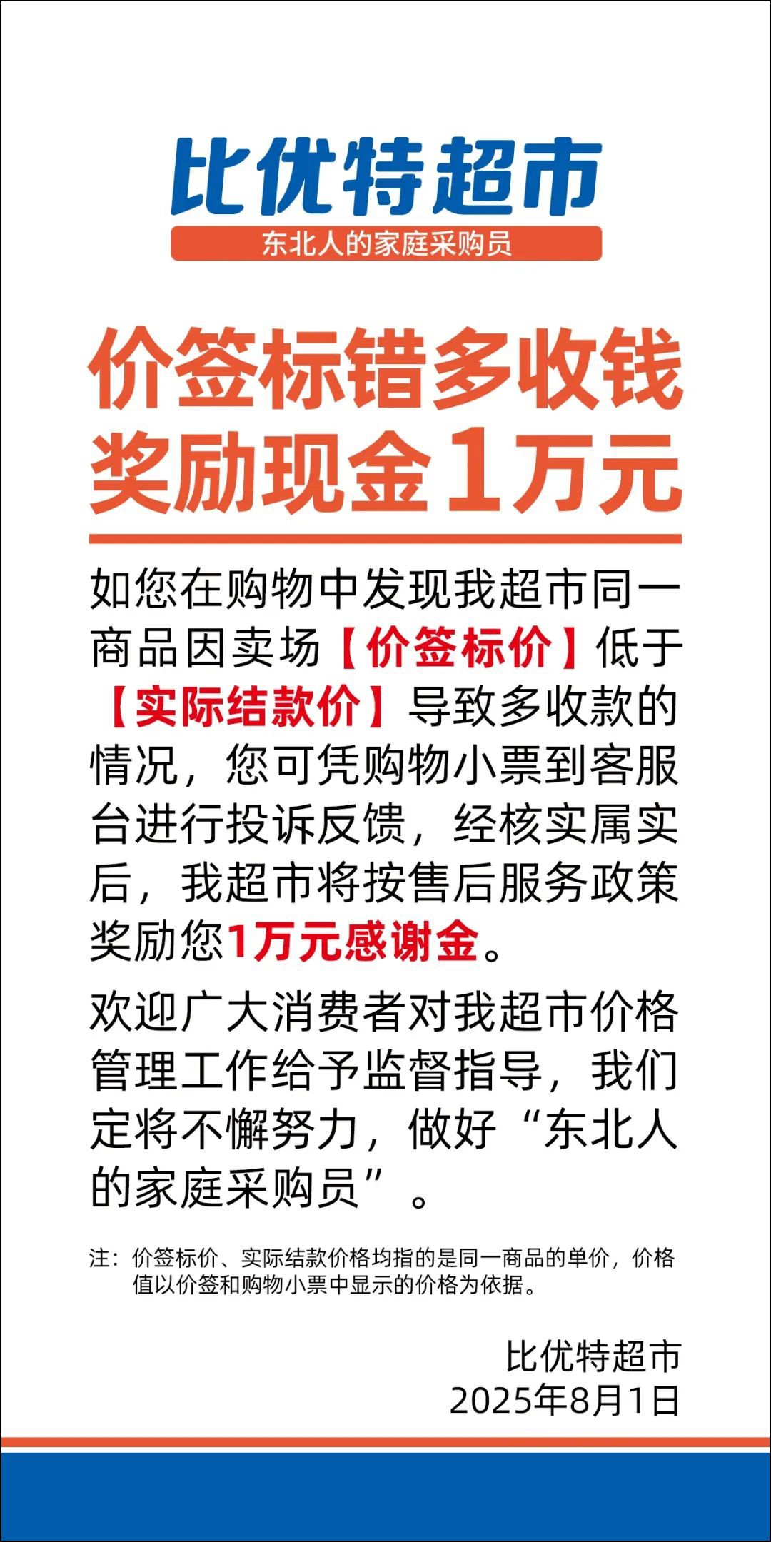 近日,比優(yōu)特超市正式推出一項重磅售后承諾:“價簽標錯,萬元獎勵”! 據《話沈陽》報道,該政策的推出源于此前一起消費糾紛:一位消費者在哈爾濱比優(yōu)特超市購買櫻桃時,遇到實際收費高于標價的情況。經消費者向媒體反映后,超市已向其賠償500元。 以此為鑒,比優(yōu)特超市鄭重承諾:自8月1日起,若消費者在門店購物時發(fā)現價簽標錯并被多收費用,經核實后將獲得 1 萬元現金獎勵。 有網友通俗解釋這一政策:“比如商品價簽標1塊,實際收了2塊,只要消費者發(fā)現并核實,就能獲得1萬元獎勵。” 對于這樣的政策,你怎么看? |