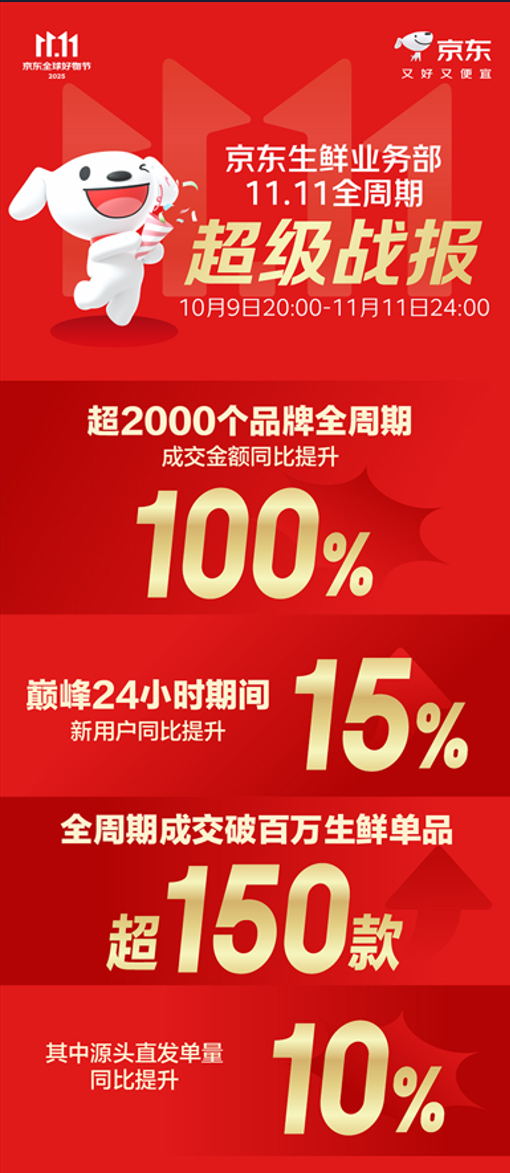 超級(jí)供應(yīng)鏈上的京東11.11,不僅為消費(fèi)者帶來極致的購物體驗(yàn),也有效推動(dòng)了產(chǎn)業(yè)上下游以新需求引領(lǐng)新供給、以新供給創(chuàng)造新需求的良性互動(dòng)。這一模式不僅助力品牌與商家實(shí)現(xiàn)銷售快速增長(zhǎng),也提升了中國(guó)品牌在全球市場(chǎng)的競(jìng)爭(zhēng)力,使產(chǎn)業(yè)鏈各環(huán)節(jié)參與者廣泛受益。 數(shù)據(jù)顯示,京東11.11巔峰24小時(shí)內(nèi),京東生鮮新用戶數(shù)量同比增長(zhǎng)15%。整個(gè)生鮮品類銷售火爆,超過2000個(gè)生鮮品牌成交金額同比增長(zhǎng)100%,全周期內(nèi)成交額突破百萬的明星單品超過150款。這不僅體現(xiàn)了銷售的“加速度”,更折射出消費(fèi)信心與市場(chǎng)活力的顯著提升。 消費(fèi)趨勢(shì)方面,生鮮品類呈現(xiàn)出多元化、高品質(zhì)與源頭化三大特征。例如,山東煙薯銷量同比增長(zhǎng)412倍,煙臺(tái)紅富士增長(zhǎng)超9倍,福建黑虎蝦、阿根廷魷魚、京東跑步雞分別實(shí)現(xiàn)6倍、4倍和3倍的增長(zhǎng)。宿遷霸王蟹、大連海參同比增長(zhǎng)300%,福州魚丸、連江鮑魚、鹽池灘羊等地標(biāo)農(nóng)產(chǎn)品增幅也實(shí)現(xiàn)150%至221%不等的增長(zhǎng),展現(xiàn)出地標(biāo)農(nóng)產(chǎn)品強(qiáng)勁的市場(chǎng)爆發(fā)力。 與此同時(shí),一批“隱藏款”土特產(chǎn)也嶄露頭角,溫縣壚土鐵棍山藥增長(zhǎng)21倍,云南黑松露增長(zhǎng)4倍,新疆有機(jī)牛腿肉、湘西黑豬、可生食雞蛋等增幅均超200%,反映出消費(fèi)者對(duì)特色優(yōu)質(zhì)食材的挖掘能力。在時(shí)令生鮮方面,和牛涮烤片、進(jìn)口牛肋排、澳洲牛肉等高品質(zhì)商品也實(shí)現(xiàn)高倍數(shù)增長(zhǎng),則印證了家庭餐飲對(duì)于健康、品質(zhì)方面的消費(fèi)趨勢(shì)。 亮眼數(shù)據(jù)的背后,是京東“超級(jí)供應(yīng)鏈”在產(chǎn)業(yè)鏈“十節(jié)甘蔗”各個(gè)環(huán)節(jié)的無處不在。它深入產(chǎn)地源頭,將“源頭直發(fā)”模式作為核心,不僅保證了產(chǎn)品的新鮮度,更重塑了農(nóng)產(chǎn)品的產(chǎn)銷鏈路。 今年京東11.11期間,源頭直發(fā)的生鮮商品單量同比增長(zhǎng)10%。其中,京鮮生無抗谷物每日鮮蛋、佳農(nóng)山東煙薯、京鮮生山東菜陽秋月梨、京鮮生38號(hào)果凍橙、鮮京采厄瓜多爾白蝦、京鮮生東北黃玉米、京鮮生福建琯溪紅心蜜柚、京鮮生河南焦作鐵棍山藥、京鮮生山東普羅旺斯番茄、京鮮生內(nèi)蒙貝貝南瓜產(chǎn)品位列增長(zhǎng)前十。反映出消費(fèi)者對(duì)高品質(zhì)、可溯源生鮮產(chǎn)品的旺盛需求。 “超級(jí)供應(yīng)鏈”的價(jià)值在具體品類中得到生動(dòng)體現(xiàn)。以贛南臍橙為例,今年的豐收季正逢京東11.11,通過京東生鮮的源頭直發(fā)模式,首批臍橙首發(fā)當(dāng)日即售出超5萬箱、近300噸。對(duì)于當(dāng)?shù)氐墓r(nóng)而言,京東帶來的不僅是“開門紅”,更是持續(xù)穩(wěn)定的訂單和市場(chǎng)信心!斑^去常為銷路發(fā)愁,現(xiàn)在與京東合作,我們只需專注把果子種好!币晃缓献魃缲(fù)責(zé)人這樣感慨。這生動(dòng)地詮釋了“超級(jí)供應(yīng)鏈”如何以穩(wěn)定訂單為產(chǎn)業(yè)注入信心,讓“豐產(chǎn)”真正實(shí)現(xiàn)“豐收”。 “源頭直發(fā)”模式在商業(yè)之外,也拓展出溫暖的社會(huì)價(jià)值維度。四川眉山的愛媛橙在京東11.11期間發(fā)出50萬單,銷售額突破1200萬元。與此同時(shí),當(dāng)?shù)亍按敔敗钡膼坻鲁戎辈N售與公益結(jié)合,每售出一單即捐獻(xiàn)0.1元用于鄉(xiāng)村兒童教育,目前已累計(jì)捐贈(zèng)5萬元。這標(biāo)志著“超級(jí)供應(yīng)鏈”的價(jià)值已從商業(yè)效率延伸至社會(huì)價(jià)值,形成“消費(fèi)助力農(nóng)業(yè),農(nóng)業(yè)反哺社會(huì)”的暖心閉環(huán)。 從規(guī)模的增長(zhǎng)到價(jià)值的創(chuàng)造,從業(yè)態(tài)的創(chuàng)新到效率的提升,超級(jí)供應(yīng)鏈上京東11.11和合作伙伴們一起跑出了新的加速度,獲得了穩(wěn)定、有序、高效、健康的增長(zhǎng)。京東生鮮通過超級(jí)供應(yīng)鏈能力,將原本分散的農(nóng)產(chǎn)品供給,整合為標(biāo)準(zhǔn)化、品牌化的商品,直接觸達(dá)億萬消費(fèi)者,大幅降低中間環(huán)節(jié)的損耗與成本,實(shí)現(xiàn)了“又好又便宜”。 |