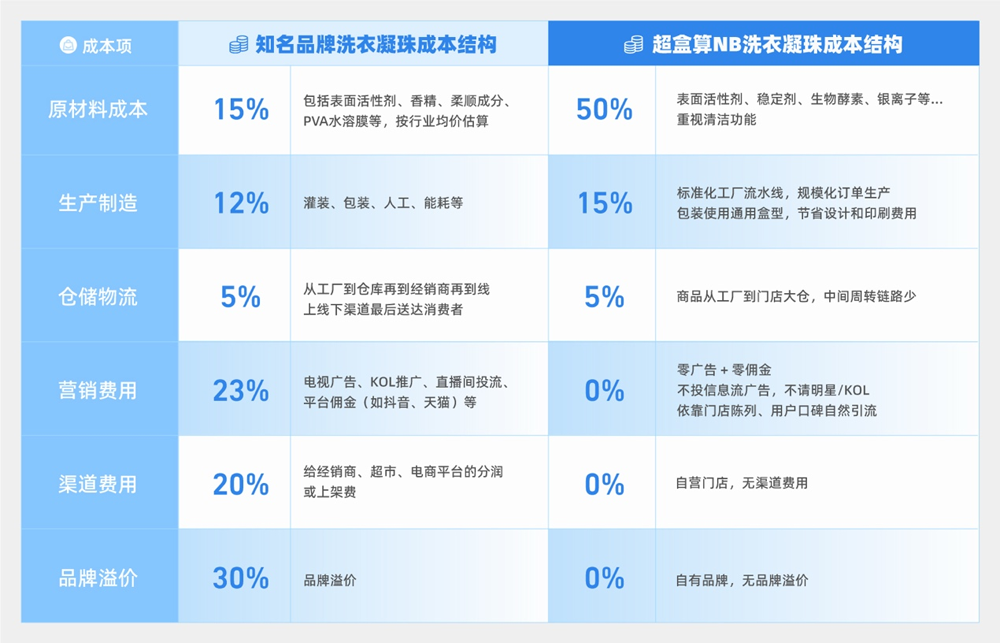 3毛多錢一粒的 “超盒算NB洗衣凝珠“在網(wǎng)上火了。 近日,一則外地網(wǎng)友求代購的帖子在網(wǎng)上引發(fā)討論,作為居家日用的高頻剛需商品,外形時尚又方便的洗衣凝珠近年來越賣越火,但是動輒一塊多錢一粒的定價,讓一些網(wǎng)友直呼“用不起”,質(zhì)疑“智商稅”。 超盒算NB洗衣凝珠的代購帖子火了之后,也有人質(zhì)疑,3毛錢一粒的洗衣凝珠,效果好嗎?引發(fā)了激烈討論。 今年火起來的硬折扣,是一種極簡商業(yè)模式——產(chǎn)品價格做到極致,不做促銷、打折,主張“天天低價”。比如在超盒算NB,其自有品牌商品的價格基本不變,一塊豆腐一直賣7毛9,10斤裝的洗衣液一直賣17塊8,洗衣凝珠也是雷打不動19塊9毛錢 60粒。目的是確保顧客每天進店看到的都是同一個價格,沒有花里胡哨的滿減、促銷等活動。 那么,知名品牌的洗衣凝珠究竟貴在哪里?硬折扣是如何擠掉水分、把商品價格打下來的呢? 市場上一線品牌的洗衣凝珠均價在1-1.5元/粒之間,家庭用戶通常每天都需要洗一筒衣物,一年下來就需要花365元~547.5元。一粒1.2元的洗衣凝珠,包含了原材料、生產(chǎn)制造、倉儲物流、品牌溢價、渠道和營銷等多種費用,與清潔無關(guān)的費用占據(jù)了近80%,而這些其實跟消費者真正使用產(chǎn)品無關(guān),這些層層堆疊的中間費用,讓一粒原本普通的洗衣凝珠成為了帶光環(huán)的消費升級品,而用戶在無形之中支付了“智商稅”。 相比之下,超盒算NB的洗衣凝珠成本鏈路就簡單得多,原材料成本占50%,其次是制造成本和倉儲物流成本,而在品牌方中占大頭的營銷、渠道、品牌費用統(tǒng)統(tǒng)為0,超盒算NB本身就是一個具備市場知名度的超市品牌,無需再為產(chǎn)品做額外的廣告推廣;從工廠到大倉、再到門店上架,也無傳統(tǒng)超市的上架費、條碼費等亂七八糟的苛捐雜費。 其次,門店數(shù)量也讓NB具有規(guī)模采購優(yōu)勢。全國350多家的超盒算NB門店,形成穩(wěn)定銷量預(yù)期,工廠可大批量訂單生產(chǎn),單位成本大幅下降,比如洗衣凝珠的關(guān)鍵性材料PVA(聚乙烯醇),一種可溶于水的水溶性塑料薄膜,遇水后迅速溶解且無殘留,大批量采購具備更高的議價空間。 對于用戶來說,花3毛錢買到了最需要的清潔功能,并且品質(zhì)并不打折扣,生產(chǎn)工廠是行業(yè)龍頭化工企業(yè),所采用的香氛也是源自全球頂尖的香料企業(yè)芬美意,實驗室條件下12倍潔凈力,可達(dá)到國家標(biāo)準(zhǔn)配方洗衣液的蛋白去污力。每天一粒,一年的洗衣費也就120元。 同樣,產(chǎn)品的理念也貫穿在超盒算NB門店,在江浙滬幾百家門店中,可以看到極其簡約的裝修風(fēng)格,極少的店員。為了高效運營,門店隨處可見塑料周轉(zhuǎn)筐和貨架上的紙箱——方便整箱上貨,節(jié)省人力。 從生產(chǎn)源頭到門店貨架,每一個環(huán)節(jié)“摳成本”,帶來了3毛錢一粒的極致性價比洗衣凝珠,讓商品回歸了其本質(zhì)——清潔功能。 硬折扣在歐洲、日本已經(jīng)有超過半個世紀(jì)的發(fā)展歷史,近年來在中國也逐漸成為潮流。相關(guān)數(shù)據(jù)顯示,中國折扣超市市場規(guī)模未來5年的復(fù)合增長率為8.5%。 2025年被稱為“硬折扣元年”,各大互聯(lián)網(wǎng)企業(yè)、傳統(tǒng)零售紛紛進入硬折扣賽道,也預(yù)示著中國的硬折扣時代即將全面來臨。 |