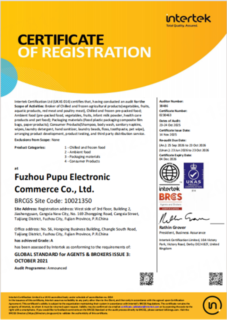 近日,樸樸超市宣布獲得BRC“代理商和經(jīng)紀(jì)商全球標(biāo)準(zhǔn)”A級(jí)認(rèn)證。該認(rèn)證覆蓋冷藏冷凍食品、常溫食品、包裝材料及消費(fèi)品。BRC標(biāo)準(zhǔn)是國(guó)際公認(rèn)的食品及消費(fèi)品領(lǐng)域權(quán)威標(biāo)準(zhǔn),其“代理商和經(jīng)紀(jì)商”標(biāo)準(zhǔn)尤為側(cè)重對(duì)供應(yīng)鏈中間環(huán)節(jié)的管控能力評(píng)估,獲得其的A級(jí)評(píng)定,是對(duì)樸樸超市長(zhǎng)期踐行的“客戶第一”理念及精細(xì)化質(zhì)量管控體系的有效驗(yàn)證。 |