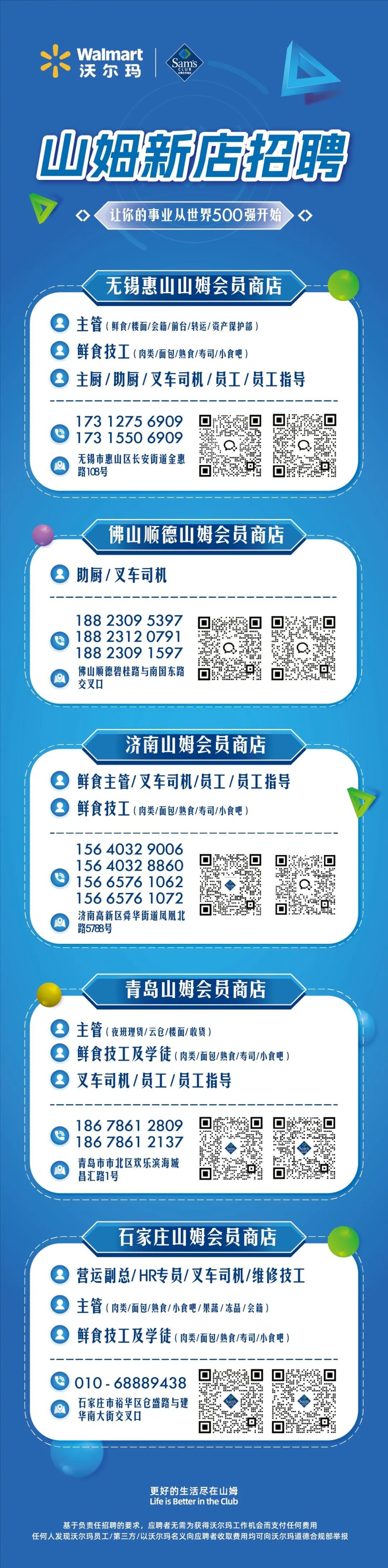 繼2025年新開10店創(chuàng)紀(jì)錄后,山姆2026年1月加碼布局,5家新店開啟招聘。 1月6日,山姆會員店官方招聘公眾號發(fā)布《1月山姆新店招聘》顯示,將在無錫、佛山、濟(jì)南、青島、石家莊5座城市開設(shè)新店并啟動人才招募。 招聘信息顯示,此次新店招聘涉及多個職位,包括營運(yùn)副總、主廚/主廚助理、鮮食/樓面/前臺/主管、肉類/面包/熟食/壽司鮮食技工及學(xué)徒、員工/員工指導(dǎo)等崗位。 作為沃爾瑪中國旗下高端付費(fèi)制會員業(yè)態(tài),山姆會員店1995年于深圳開設(shè)首店,深耕中國市場近30年,已成長為沃爾瑪中國增長核心引擎。 截至2025年12月31日,山姆全國門店已突破63家,當(dāng)年新開10家,創(chuàng)歷年紀(jì)錄;會籍?dāng)?shù)量、續(xù)卡率及活躍度持續(xù)攀升,電商銷售占比超過50%。 市場人士透露,山姆中國2025年銷售額突破1400億元,較2024年的1005億元增長約40%;付費(fèi)會員數(shù)首次突破千萬,達(dá)1070萬,折合人均年消費(fèi)約1.3萬元。 根據(jù)不完全統(tǒng)計,2026-2027年山姆還將新增門店20余家,分布在北京房山、通州,天津東麗,廣州白云,佛山禪城、順德,無錫惠山,蘇州吳江,浙江臺州,西安雁南,鄭州鄭東新區(qū),沈陽皇姑,山東濟(jì)南、青島,河北石家莊等地。 |