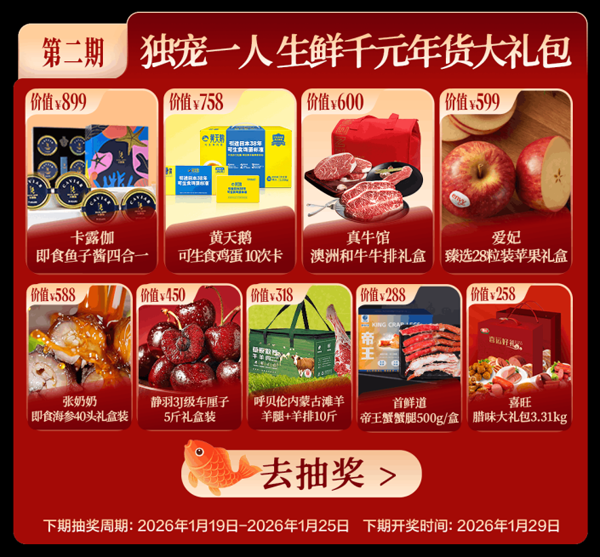 俗話說“過了臘八就是年”,熱氣騰騰的臘八粥為餐桌增添了團(tuán)圓的味道,也點(diǎn)燃了家家戶戶籌備新年的熱情。1月25日晚8點(diǎn),伴隨著越來越濃的年味兒,京東生鮮年貨節(jié)正式開啟,圍繞“心意年禮、鮮到萬家”主題,推出多項(xiàng)驚喜福利,不僅有“滿99打8折,滿199打6.5折”優(yōu)惠,爆款生鮮低至5折,爆款禮盒“滿299減50”,更有千元生鮮年貨大禮包抽獎(jiǎng)活動(dòng),以及1元搶大龍燚蝦滑、思念柿柿如意湯圓、叮叮懶人菜雙蛋白藜麥雞排等。 從時(shí)令果蔬、海鮮水產(chǎn)、肉禽蛋到方便速食,種類豐富、高質(zhì)價(jià)比的生鮮好物齊登場,為上京東辦年貨的消費(fèi)者帶來實(shí)實(shí)在在的新年驚喜;顒(dòng)期間,消費(fèi)者打開京東APP,搜索“京東生鮮年貨節(jié)”即可直達(dá)線上年貨大集,把“又好又便宜”的“心意年禮”帶回家。 每周抽取“年貨錦鯉”,千元禮包賀新春開門紅 今年,從“湘超”到“央超”,綠茵賽事在引爆全網(wǎng)熱情的同時(shí),也走進(jìn)了京東生鮮的直播間。1月24日晚,2026年CMG群眾足球邀請賽迎來最終對決,賽場上,廣東湛江隊(duì)與戰(zhàn)勝東道主湖南永州隊(duì)展開了一場精彩的雙雄爭霸,賽場外,京東生鮮與永州市政府展開深度共建,通過“品永州美食 觀綠茵對決”的助農(nóng)新路徑,讓永州的雞樅菌、虎爪姜、杏鮑菇、香柚、山雞蛋等特色農(nóng)產(chǎn)品從山村田間直達(dá)千家萬戶,不少消費(fèi)者通過京東生鮮“永湘甄選官方旗艦店”,品嘗到了來自永州的地道風(fēng)味。 足球賽點(diǎn)燃了冬日的熱情,臘八節(jié)緊隨其后,再次引燃了新一輪的消費(fèi)熱情。1月25日晚8點(diǎn),京東生鮮年貨節(jié)“搶鮮”開啟,用高品質(zhì)、全品類生鮮盛宴接檔賽事,從寧夏灘羊、云南黑松露、海南哈密瓜、福州金湯佛跳墻,到智利車?yán)遄印⑻﹪鹫砹裆、厄瓜多爾白蝦、俄羅斯帝王蟹……“又好又便宜”的生鮮年貨低至5折優(yōu)惠,還有1元搶、抽獎(jiǎng)等多重福利,把冬日消費(fèi)熱情推向另一個(gè)高潮。 年貨節(jié)期間,京東生鮮每周抽取一位“年貨錦鯉”,免費(fèi)送上價(jià)值千元的年貨大禮包,為新春佳節(jié)添福氣。消費(fèi)者購買京東生鮮推出的年貨禮盒后,掃描禮盒腰封二維碼或搜索“碼上搶鮮”進(jìn)入禮盒會(huì)場報(bào)名,即可參與抽獎(jiǎng)。目前,第二波抽獎(jiǎng)活動(dòng)正在火熱進(jìn)行中,10斤的內(nèi)蒙古灘羊羊腿+羊排、3.31kg臘味大禮包、500g帝王蟹蟹腿、40只即食海參、3J級車?yán)遄、即食魚子醬等生鮮好禮,將在1月29日揭曉,歡迎廣大消費(fèi)者來京東生鮮“接好運(yùn)”。 作為走親訪友饋贈(zèng)佳品,京東生鮮禮盒全方位滿足多元化消費(fèi)需求,涵蓋高品質(zhì)鮮果、水產(chǎn)、牛羊肉等豐富品類,其中不乏5J級智利車?yán)遄印⑻﹪鹫砹裆、菲力整切牛排、灘羊、帝王蟹、佛跳墻等熱門年貨選擇。消費(fèi)者選購10.5斤裝的金唐海鮮禮盒大禮包,不僅能一次買齊東星斑、鮑魚、大蝦等10種海鮮“硬貨”,還能獲贈(zèng)限量精美的馬年金鈔,在大飽口福的同時(shí)添個(gè)“馬到成功”的好彩頭。 滿載“年年有余”美好祝愿的查干湖魚年貨禮盒,更是今年的必購清單。京東源頭包銷的查干湖冬捕有機(jī)胖頭魚通過“一魚一碼”正品溯源體系,為每一條魚筑牢品質(zhì)護(hù)城河,從查干湖核心產(chǎn)區(qū)到消費(fèi)者年夜飯餐桌,最快可次晨達(dá),全程冷鏈鎖住新鮮,把肥美鮮嫩、鮮香可口的天然美味原樣送到天南海北。值得一提的是,爆款禮盒參與“滿299減50”優(yōu)惠活動(dòng),讓消費(fèi)者買得更加省心、開心。 “又好又便宜”,京東超級供應(yīng)鏈為生鮮年貨保駕護(hù)航 眾多高性價(jià)比年貨背后,是京東生鮮超級供應(yīng)鏈在源頭包銷、定植定養(yǎng)與海外直采等方面的持續(xù)探索。過去一年,京東生鮮深耕源頭,在業(yè)內(nèi)率先推出“包圓”模式,通過源頭包銷、源頭直采、源頭直發(fā)等方式,為消費(fèi)者帶來“又好又便宜”的生鮮商品。同時(shí),京東生鮮積極走向供應(yīng)鏈的最前端,通過對消費(fèi)需求的精準(zhǔn)洞察,反向推動(dòng)合作基地進(jìn)行定植定養(yǎng),讓產(chǎn)業(yè)端實(shí)現(xiàn)“按需生產(chǎn)”,獲得更確定性的增長,同時(shí)為消費(fèi)者帶來更豐富的差異化供給,在廣東清遠(yuǎn)、河北武邑等地成功落地“跑步雞”“跑山豬”等項(xiàng)目。在海外直采方面,通過專業(yè)買手直連海外產(chǎn)地,實(shí)現(xiàn)成本與品質(zhì)的直接管控,讓澳洲鮮活皇帝蟹、冰島海參、大西洋真鱈、塔斯馬尼亞車?yán)遄拥雀嘈缕嫣氐娜蚝梦,也能“鮮”達(dá)中國消費(fèi)者的餐桌。 有了京東生鮮超級供應(yīng)鏈的強(qiáng)力支撐,今年年貨節(jié),京東生鮮帶來了眾多健康、安心、又好又便宜的全球生鮮美味。安井黃金蝴蝶蝦、黑椒牛仔骨,天海藏金湯佛跳墻、10參10鮑大盆菜等多款美食只需5折。 時(shí)令果鮮是年貨清單上的重要一環(huán)。冬季“頂流”水果四川耙耙柑,果肉飽滿多汁、味道酸甜適口,從四川樂山、眉山等核心產(chǎn)區(qū)包園采摘,實(shí)現(xiàn)產(chǎn)地倉直發(fā)消費(fèi)者,為千家萬戶的年味兒增添一縷鮮甜;丹東99紅顏奶油草莓甜度高,奶油香濃郁,果肉緊實(shí);新疆